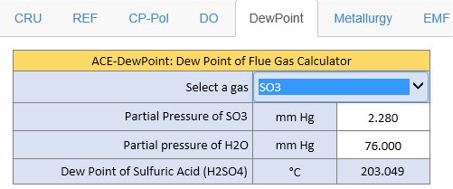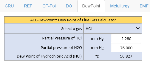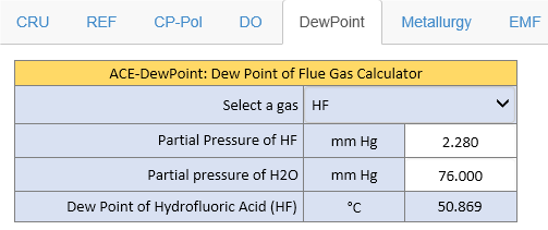 DewPoint: Dew Point of flue gas calculator - Predicting the dew points of flue gas: HBr, HCl, HF, NO2, SO2, SO3, and H2O